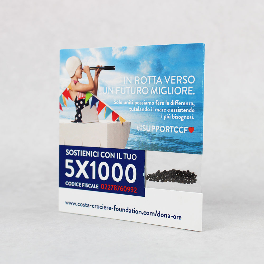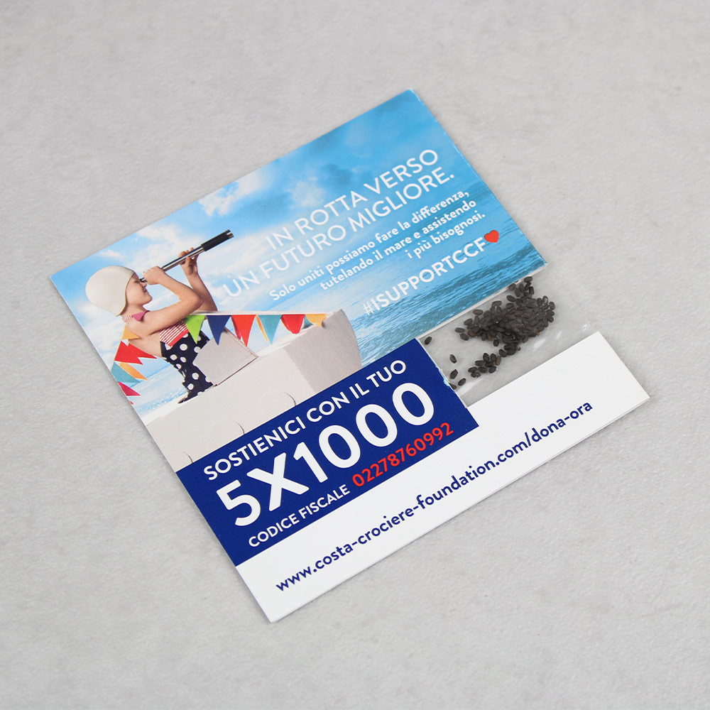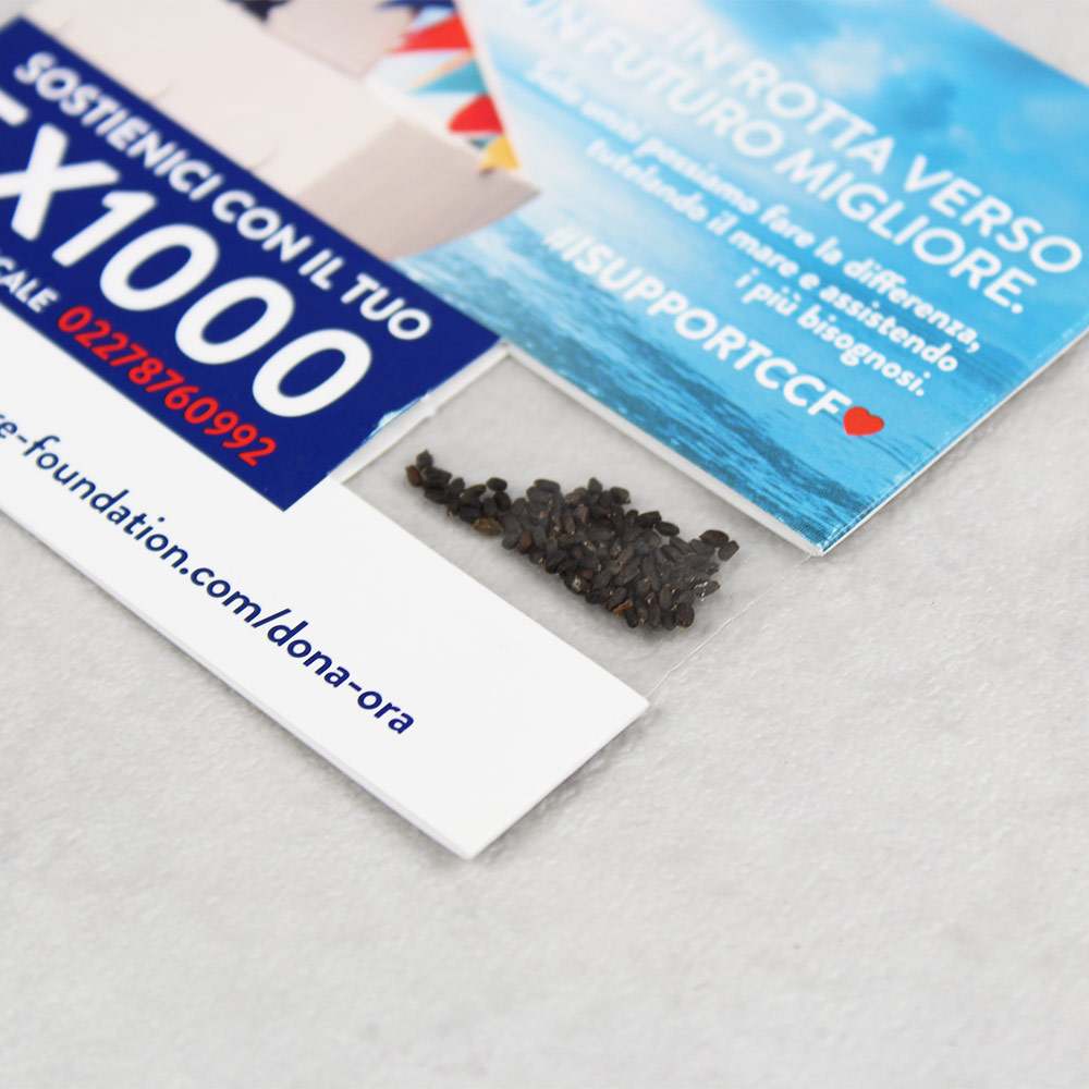 - Un CARTONCINO INFORMATIVO contenente dei SEMI da utilizzare per dare vita ad una pianta o fiori