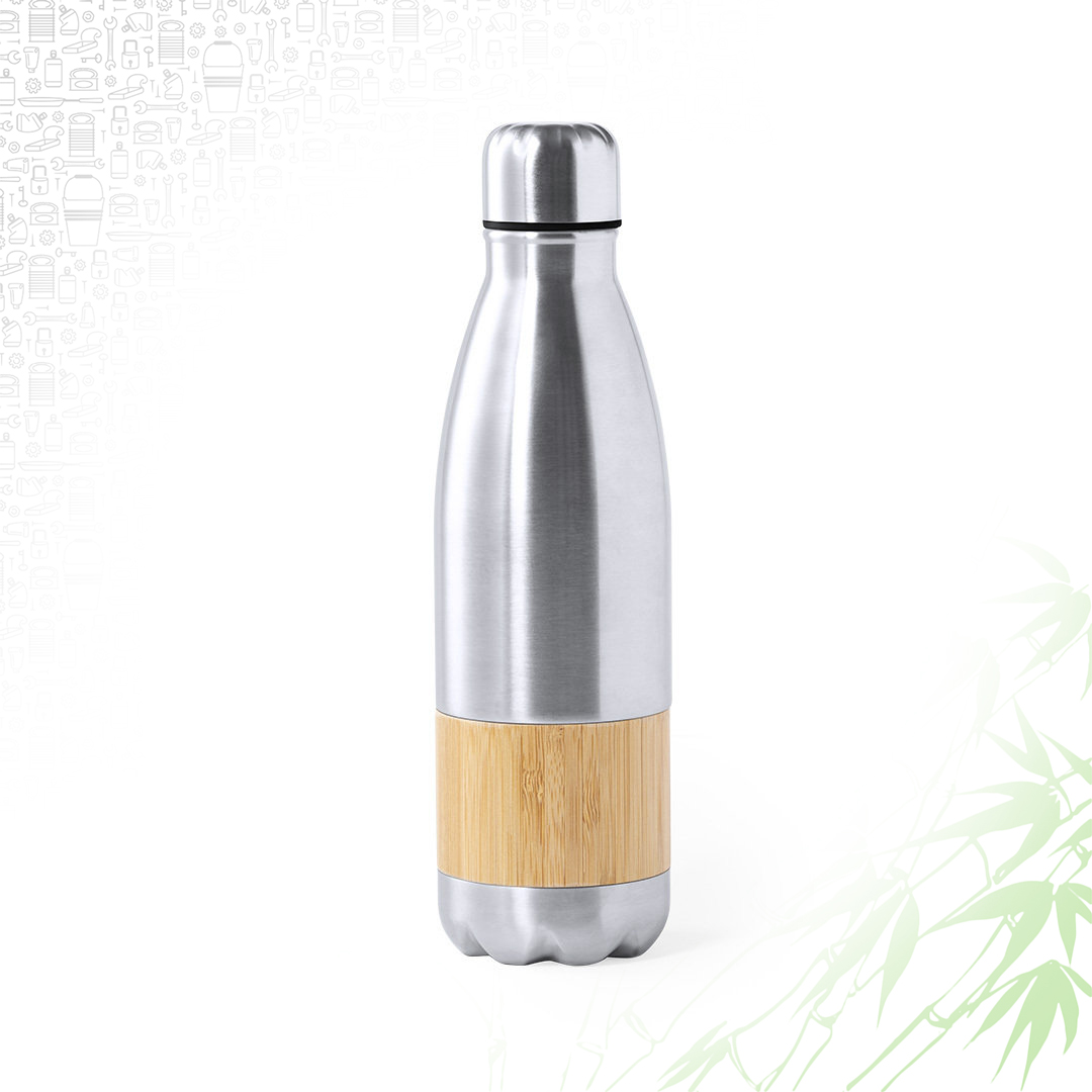 Borraccia in acciaio inox e bamboo. Capacità 750 ml. Una borraccia che sa essere elegante e al tempo stesso ecologica, grazie al suo fusto in bamboo.