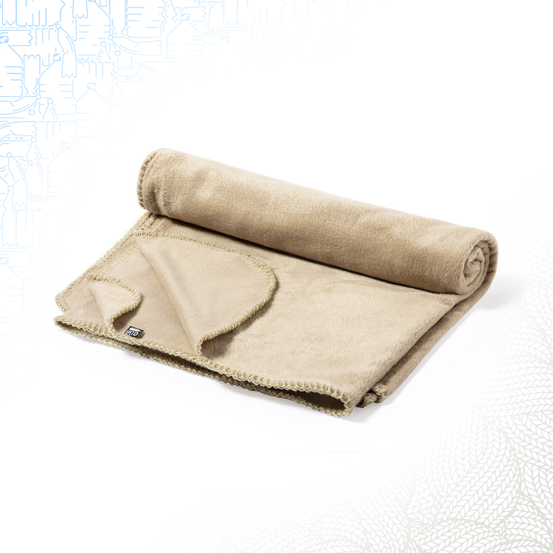 Coperta in poliestere R-PET 200 g/m2 con custodia in cotone, un oggetto utile nella vita quotidiana che sia sposa con il riciclo ecologico dei materiali di plastica. Ampia dimensione di stampa.