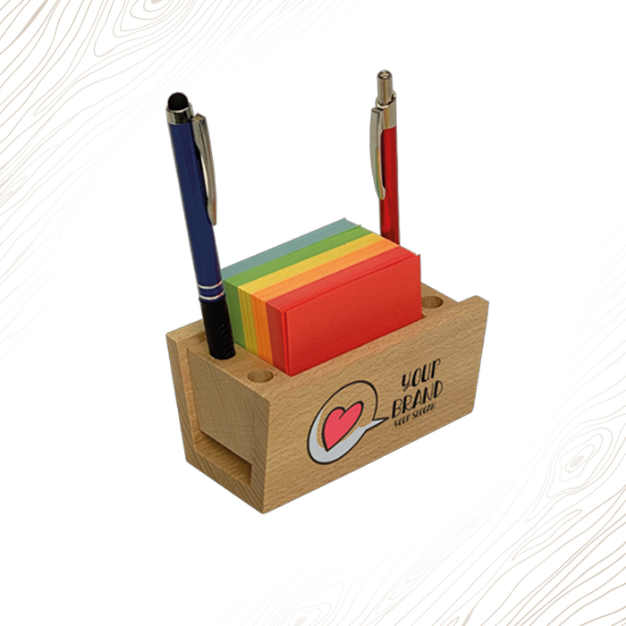 Box Porta foglietti con fori per le penne fatto in legno naturale Made in Italy