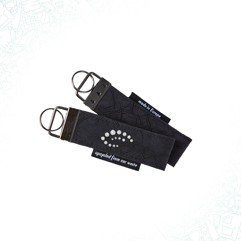 Portachiavi realizzato al 100% con il riutilizzo di materiale proveniente da airbag di auto demolite. Prodotta in Europa (Germania)