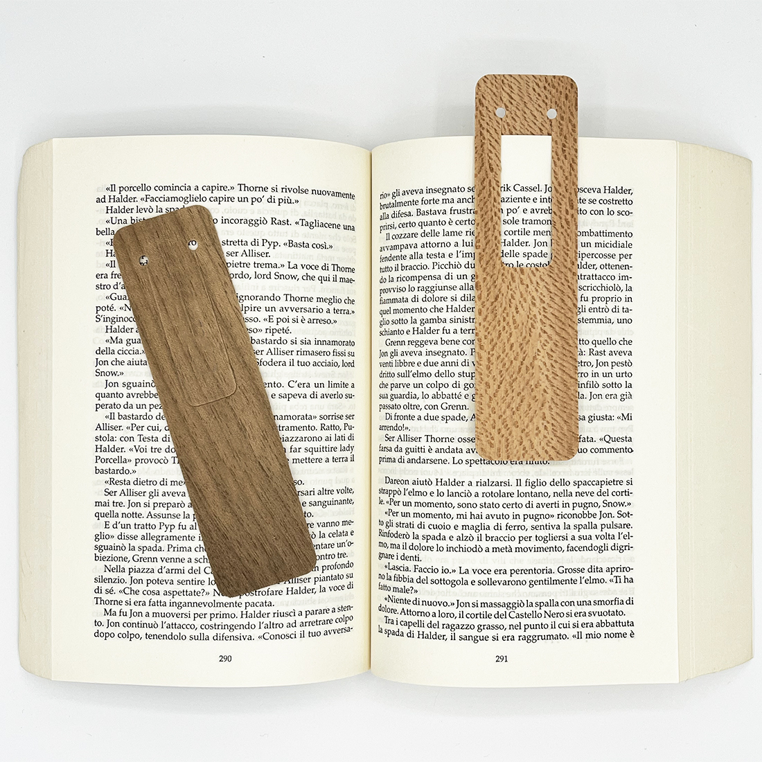 Segnalibro in legno tranciato sottilissimo proveniente dagli avanzi dell’industria del mobile. Ogni segnalibro è un pezzo unico: la diversa combinazione di essenze, l’armonia dei disegni naturali del legno, fino alle tonalità di colore, rendono questi prodotti originali. La possibilità di personalizzarli con un’elegante incisione li rende ancora più esclusivi. Disponibile in 7 tipologie di legno.
