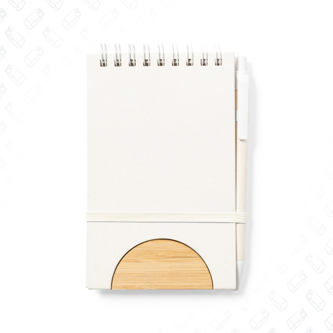 Taccuino trasformabile in supporto per smartphone e realizzato con cartoni del latte riciclato. Copertine rigide, con dettaglio in bambù sulla copertina e chiusura elastica in tinta. Interno con 80 fogli a riga singola e etichetta cartone del latte riciclato sul retro copertina- penna realizzata con cartoni del latte riciclati e dettagli bianchi con meccanismo a pulsante e inchiostro blu. Con etichetta cartone del latte riciclato sulla parte superiore della penna. I cartoni del latte sono realizzati principalmente in cartone e alluminio. Questo materiale si caratterizza per il suo alto grado di riciclabilità, oltre che per la sua leggerezza e resistenza.